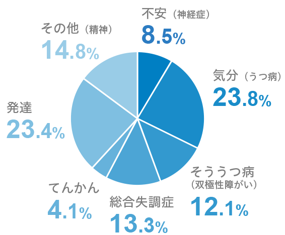 上記はdodaチャレンジの公式ページで公表されている、利用者の障がいの種類に関するデータです。
