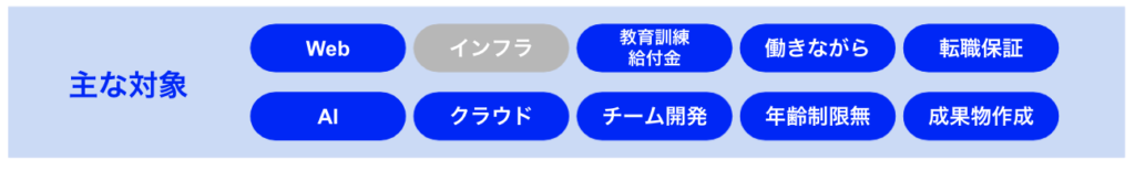 教育訓練給付金支給対象講座となっているため、高い投資対効果でエンジニアスキルを身につけ、エンジニアとして転職できます。