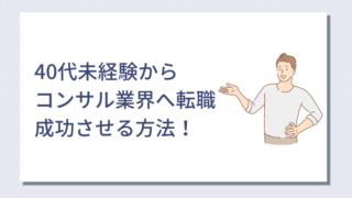 未経験からのコンサル転職におすすめの転職エージェントは「コンサル未経験者に強い転職エージェントおすすめ7選!上手く活用する方法や穴場のファームも紹介」を参考にしてください。